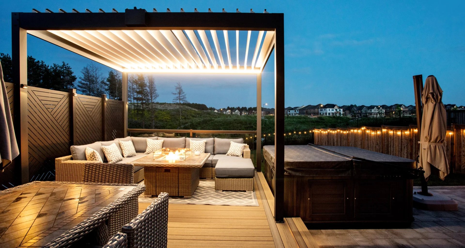 For a unique touch, when the pergola is put up, think about adding other elements like weatherproof curtains, climbing plants, or string lights.